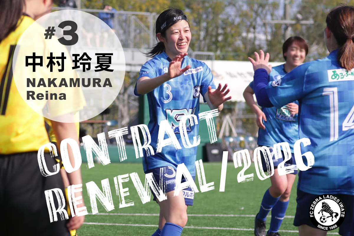 25 Feb 2026中村 玲夏 選手 2026シーズン継続のお知らせこのたび、#3 中村 玲夏 選手が、2026シーズンもFCゼブラレディース岩手でプレーすることが決定いたしましたので、お知らせいたします。さらなる飛躍を目指し、チーム一丸となって戦ってまいります。引き続き、熱いご声援をよろしくお願いいたします。#3 中村玲夏#3 中村玲夏 選手 コメント2026シーズンもFCゼブラレディース岩手でプレーできる事を大変嬉しく思っております!引き継ぎ温かいご声援をよろしくお願いいたします⚽️